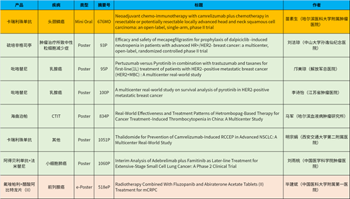 在头颈肿瘤、乳腺癌、肺癌、前列腺癌等多个疾病领域,卡瑞利珠单抗、阿得贝利单抗、吡咯替尼、氟唑帕利、法米替尼、醋酸阿比特龙片(II)等抗肿瘤新药相关研究一共入选了1项简短口头报告、4项壁报展示和1项电子壁报,彰显了AG官网医药强劲的研发实力。